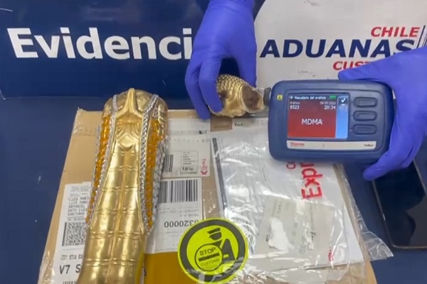 Fiscalizadores del Servicio Nacional de Aduana evitaron el ingreso de 1.589 gramos de éxtasis granulado escondido al interior de una figura de Buda, que ingresaba al país en una encomienda proveniente desde España con destino a un domicilio de Santiago.