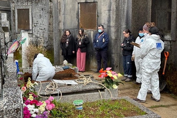 Por disposición de la Fiscalía de Los Ríos, en la exhumación participó un equipo de antropólogas de la Unidad de Casos Especiales del Servicio Médico Legal (SML) de Santiago y detectives de la Brigada de Homicidios de la Policía de Investigaciones de Valdivia.