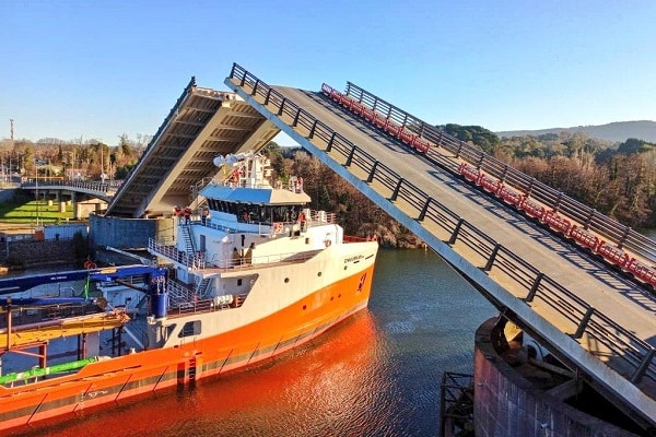 De acuerdo a la programación del MOP, la jornada contempla el tránsito fluvial de la embarcación Owarkun, que ingresará a dependencias de la empresa Asenav; mientras que minutos después la nave Atmosphere saldrá de los astilleros valdivianos, con rumbo a la costa.